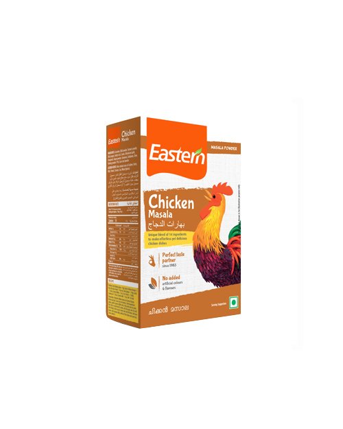 Eastern Chicken Masala is a spice mix used for preparing chicken dishes. It contains a blend of ground spices that adds taste, aroma, and color. Used while cooking chicken with gravy or dry recipes. The mix blends evenly with chicken and other ingredients. Suitable for daily cooking in kitchens. A common spice mix used in recipes.